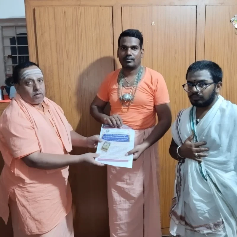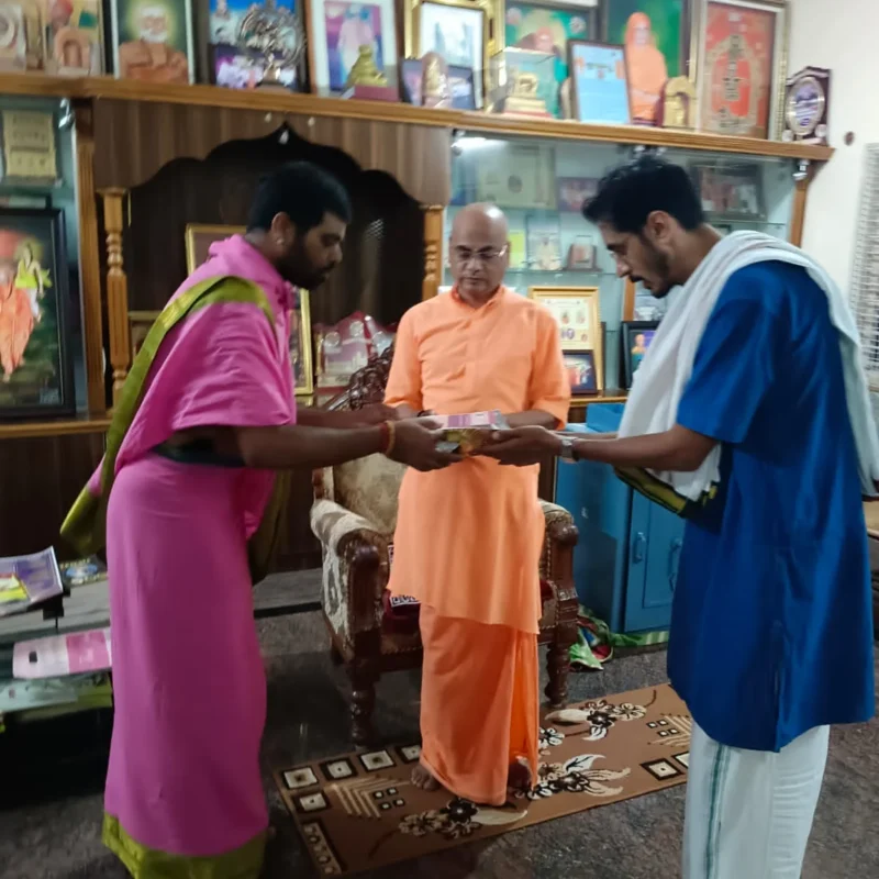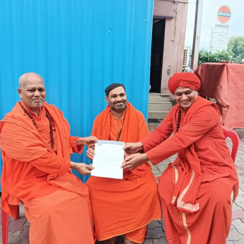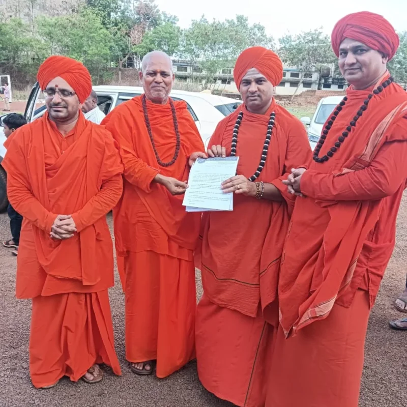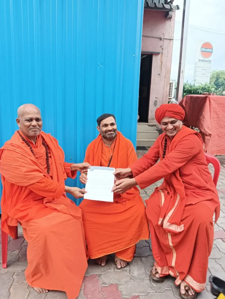 The seve kartas visited each saint with respect and a warm invitation for the grand inauguration of Bhārateeya Santa Mahaa Parishhad on Monday, 16 June 2025. During each visit they explained the purpose of uniting saints to guide society. Their presence would naturally fulfil this vision of coming together to guide people.