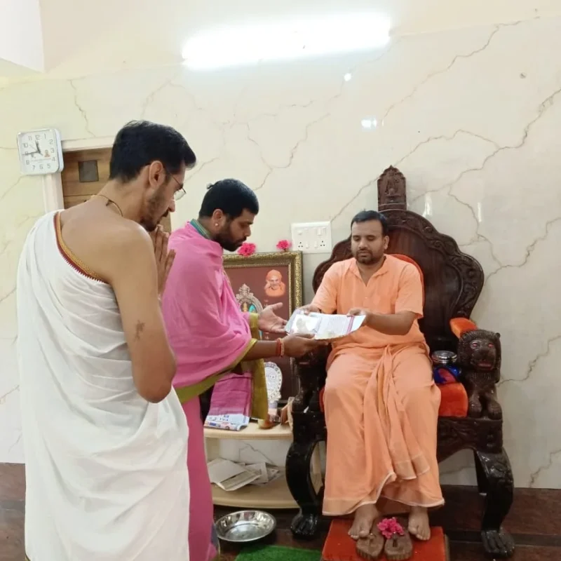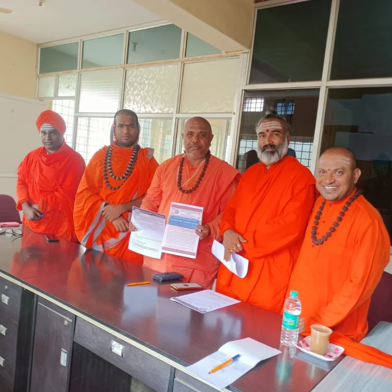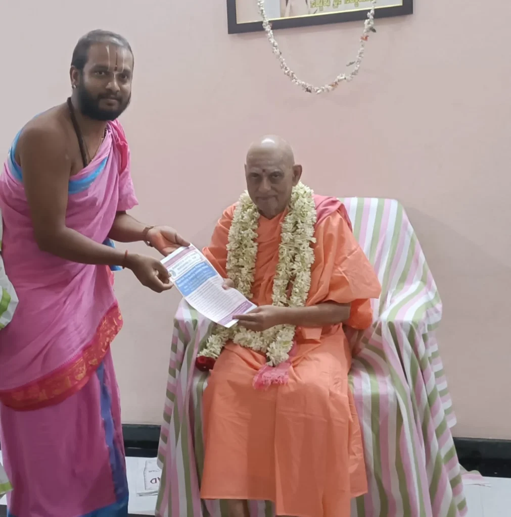 The seve kartas visited each saint with respect and a warm invitation for the grand inauguration of Bhārateeya Santa Mahaa Parishhad on Monday, 16 June 2025. During each visit they explained the purpose of uniting saints to guide society. Their presence would naturally fulfil this vision of coming together to guide people.
